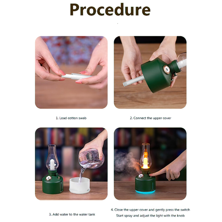 Introducing our useful device for fresh air and warm nights: the Humidifier with Lantern Light! It's simple to coordinate with any decor because it comes in green, white, or black.